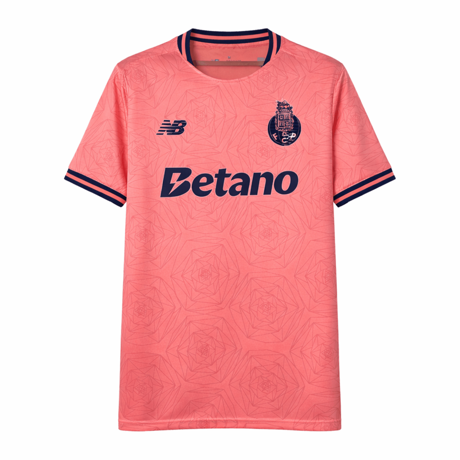 Com um elegante tom salmão e um padrão floral subliminar que percorre todo o tecido, esta camisola traduz a paixão dos adeptos portistas e o espírito de uma cidade que nunca se rende. Mais do que um equipamento, é uma declaração de identidade: Porto cidade, Porto clube.